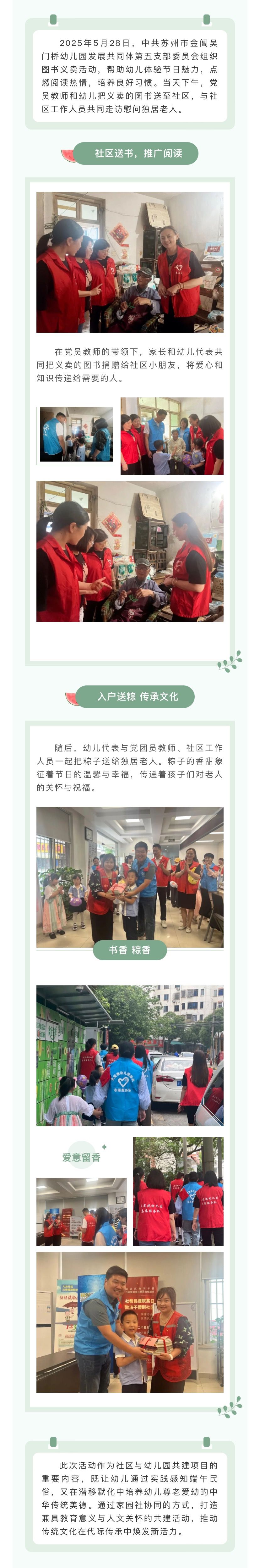 党群之声|粽香 书香 爱意留香——苏州市金阊吴门桥幼儿园发展共同体第五支部“红心育苗·家校社共成长”活动