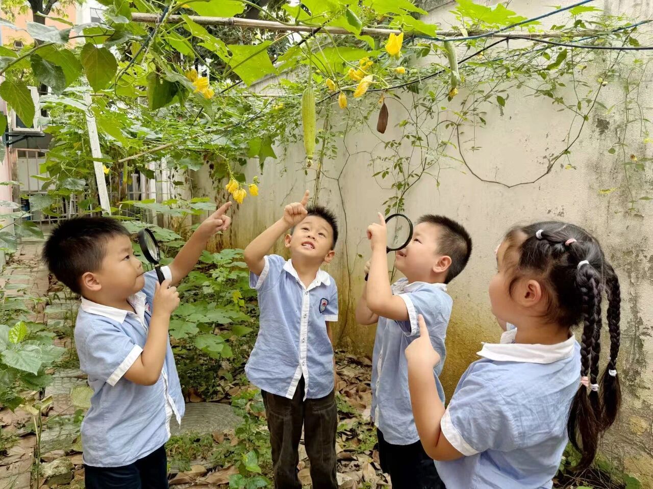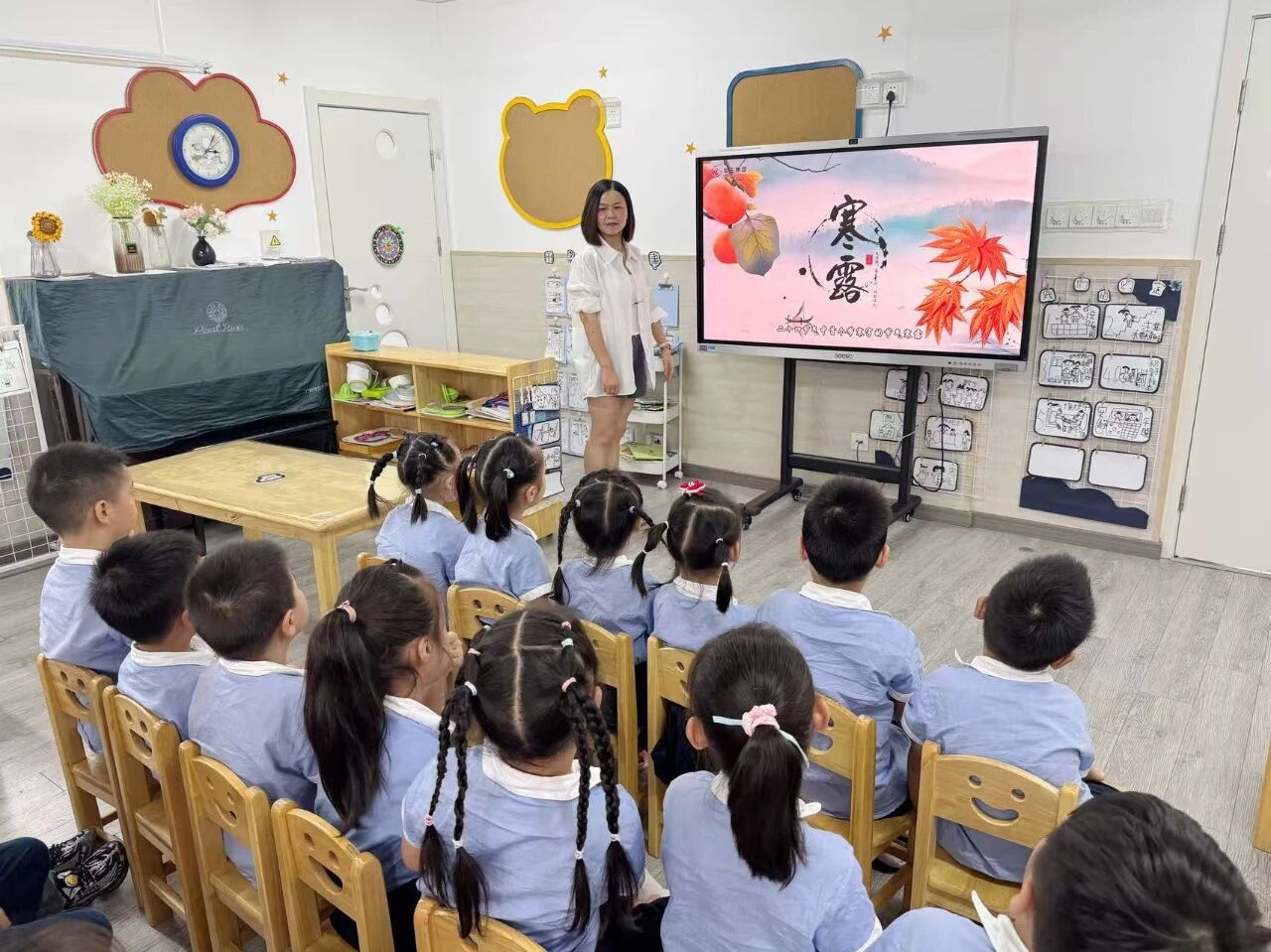 寒露时节,清晨的植物叶子上会挂满小水珠,晶莹的露水如魔法水晶球吸引着孩子们,孩子们在草丛里寻找露珠、收集露珠,感受着季节交替之际大自然的细微变化。