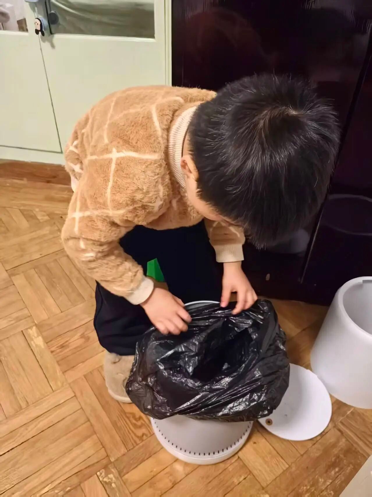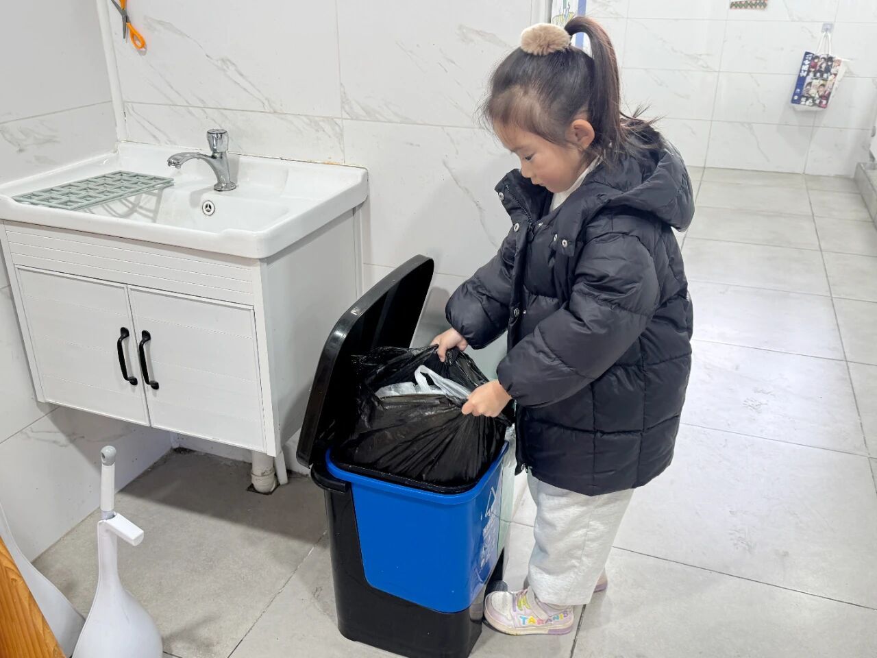 家长们拍下小朋友在家分类垃圾,主动承担起家庭垃圾分类的任务,成为家里的 “环保小管家”。家园同心,让环保的种子在孩子们心中深深扎根,也让绿色生活理念传递到每个家庭。