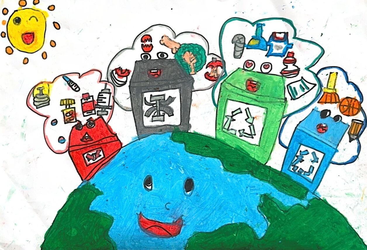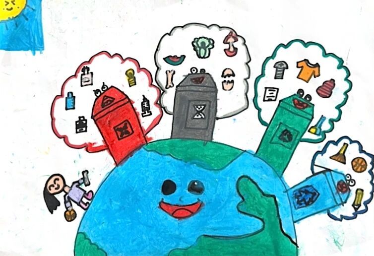 孩子们拿起画笔,将垃圾分类的益处与方法绘制成一幅幅充满童趣的作品,环保的种子就这样在小朋友们的心里悄悄发芽。
