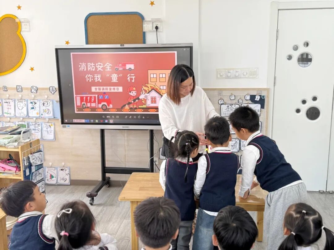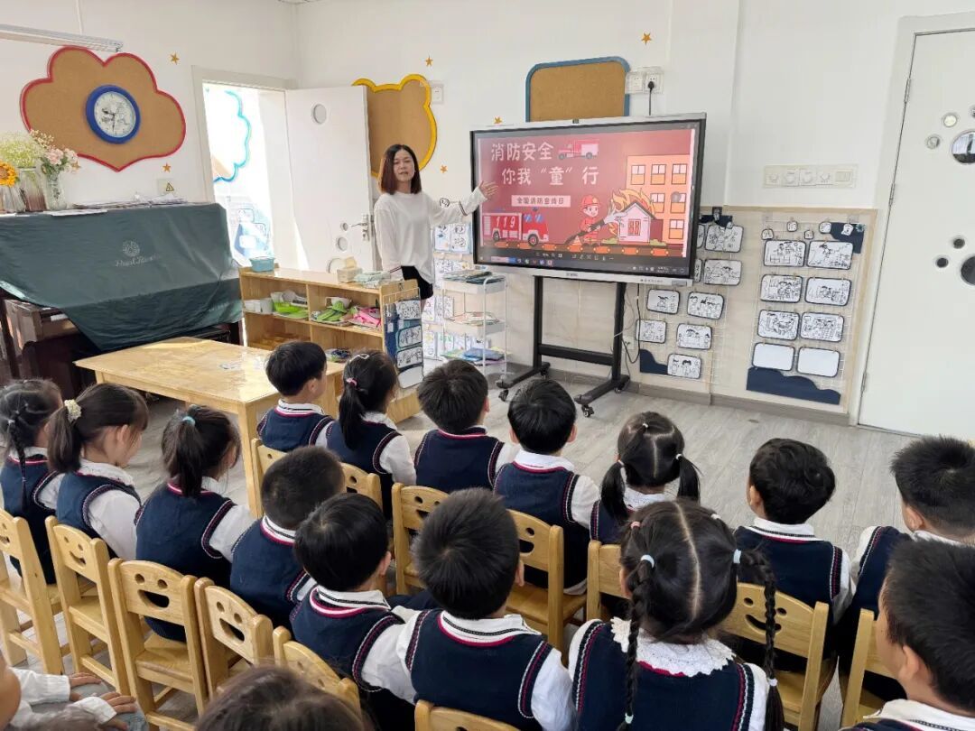 教师根据幼儿年龄特点,通过故事、图片、视频等形式开展了班级消防安全教育课,让孩子们认识火灾危害,学习逃生技巧。