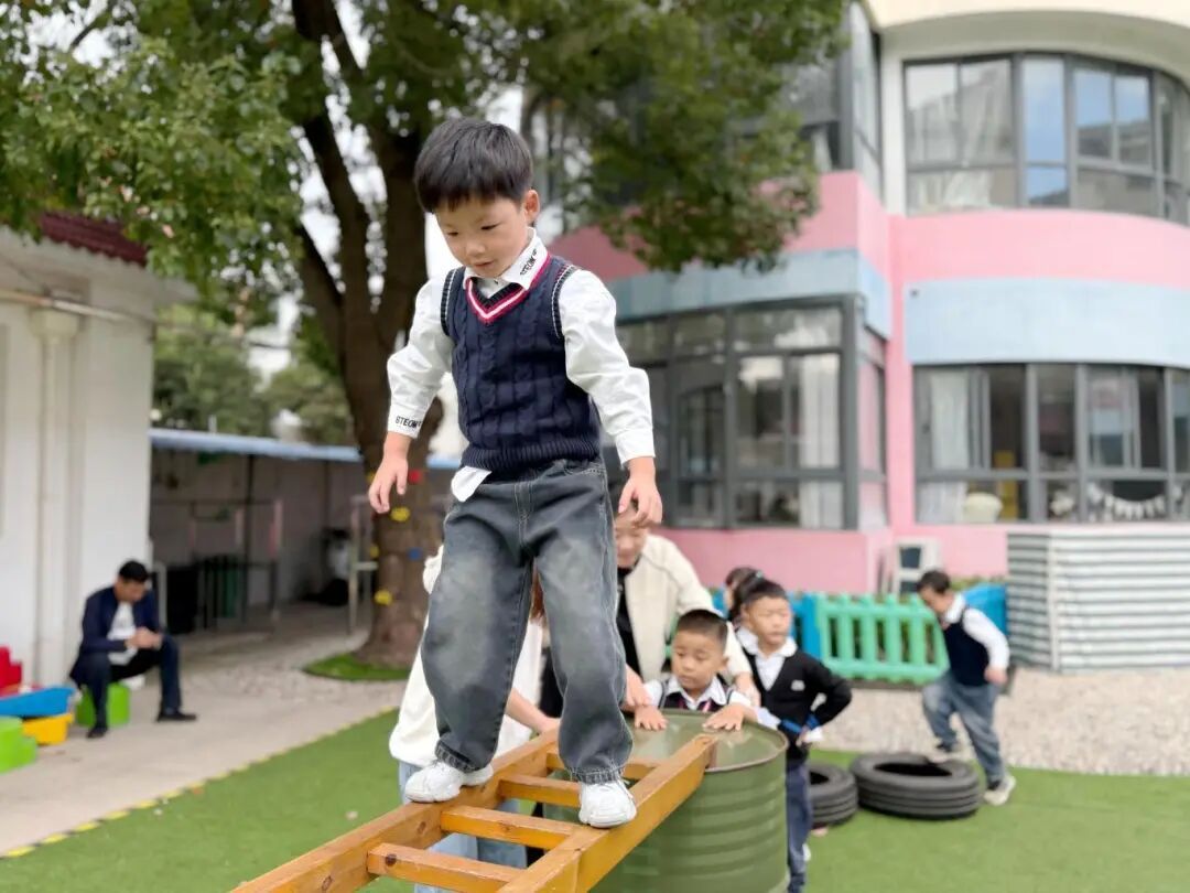 秋日的操场,是孩子们撒欢的天地。“混龄体能大循环”的号角吹响啦!看,哥哥姐姐牵着弟弟妹妹的手,在各个体能游戏区间穿梭。汗水浇灌出勇敢与自信的花朵。这不仅是体能的锻炼,更是友爱互助的生动课堂。