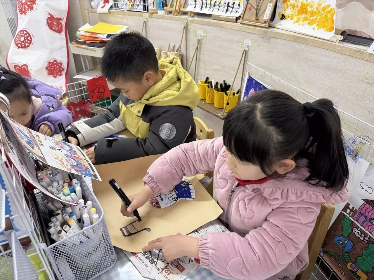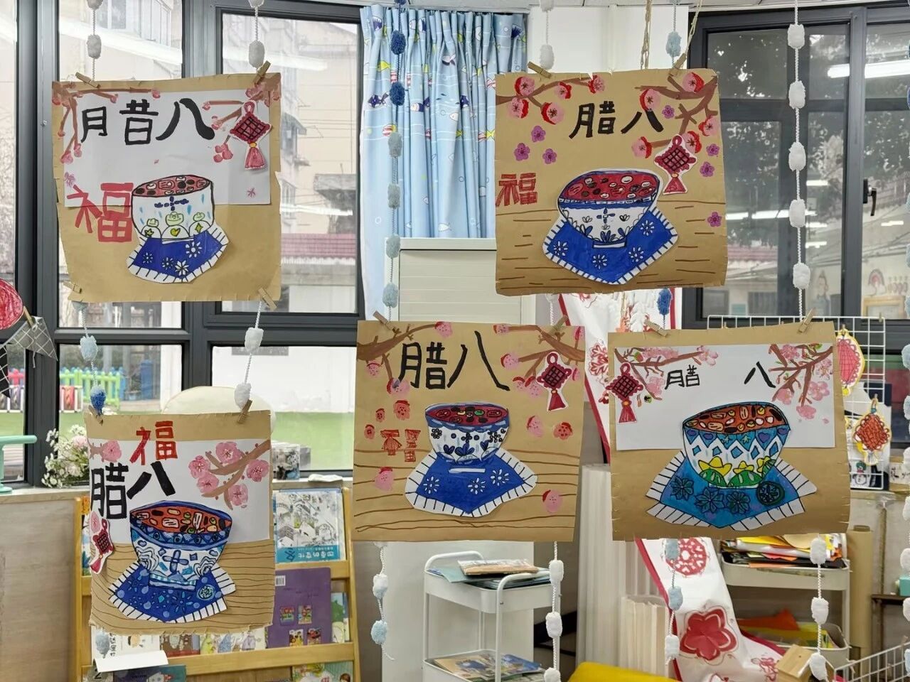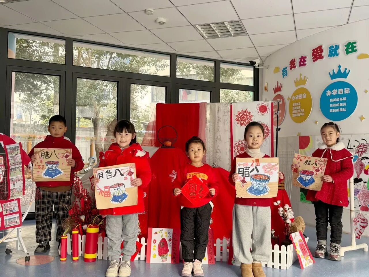 孩子们小手拿起画笔,蘸上五彩的颜色,孩子们把心中的腊八画出来——有的画出一锅圆滚滚的腊八粥,有的贴上红彤彤的窗花,还有的写出可爱的“福”字。每一幅作品都充满了童真和创意,装饰在教室里,让腊八的氛围更加喜庆活泼。