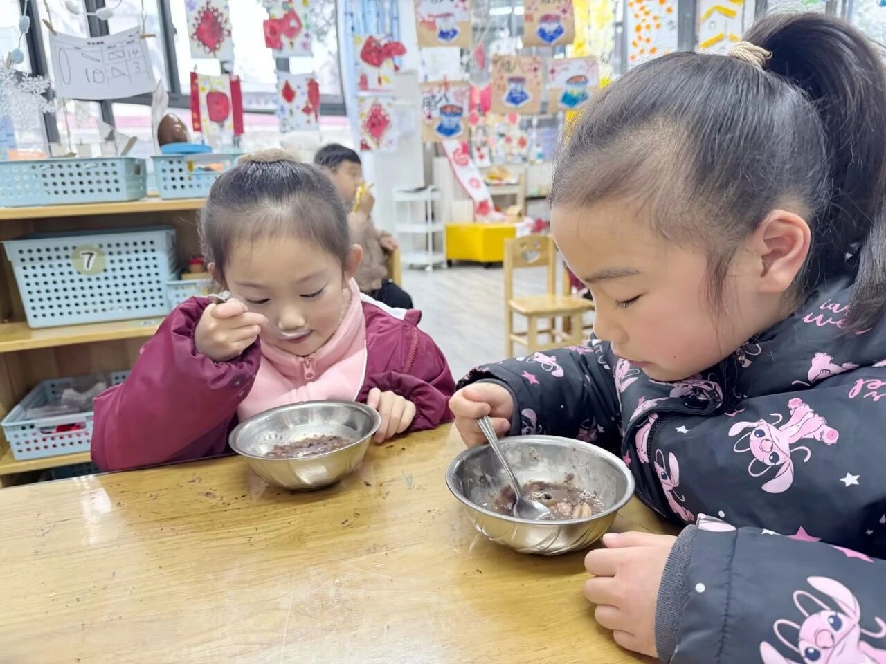 每一碗粥都包裹着孩子们纯真的笑容和真挚的祝福,让这份传统的味道在社区里流淌,连接幼儿园与家庭、社区的温情纽带。
